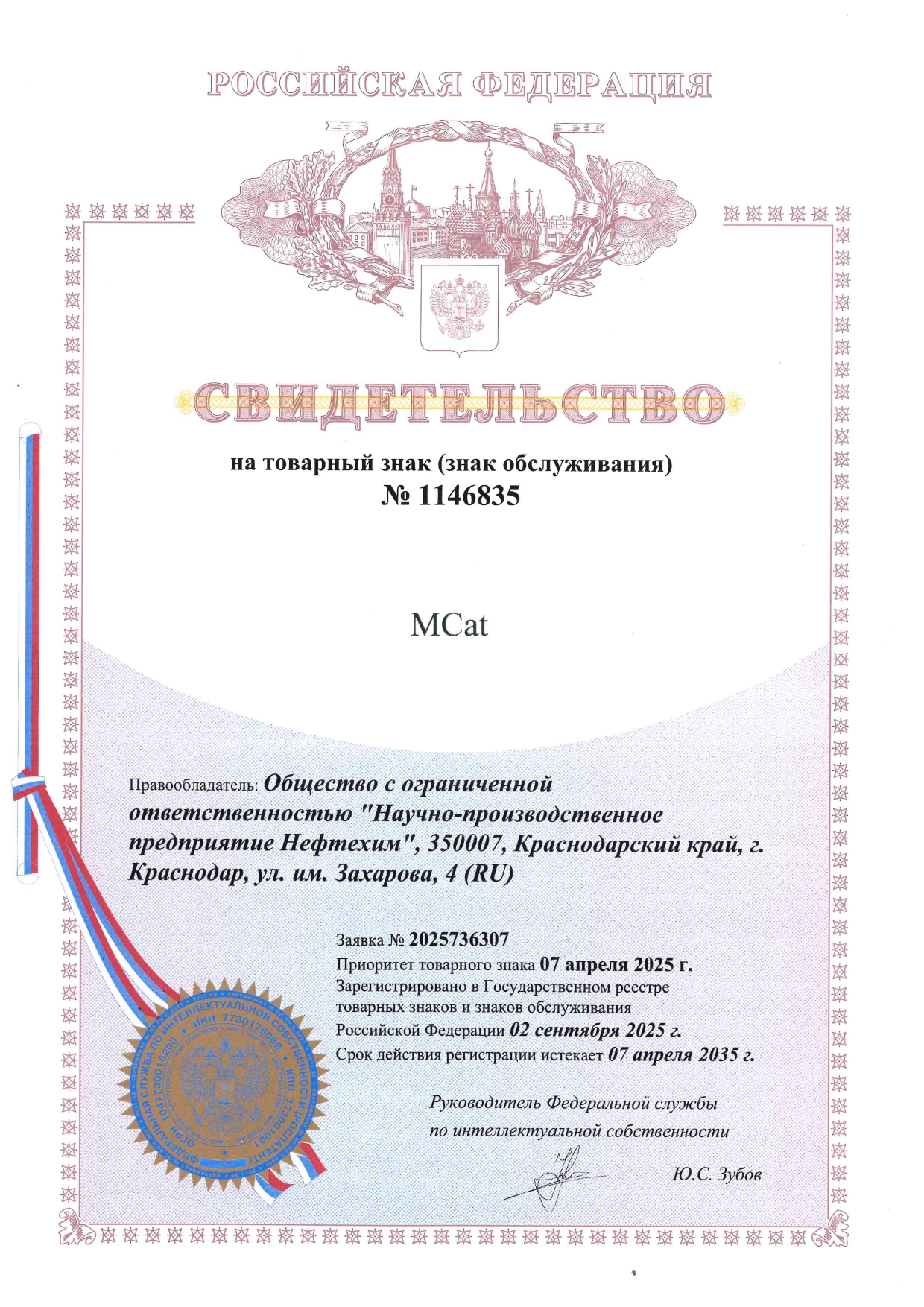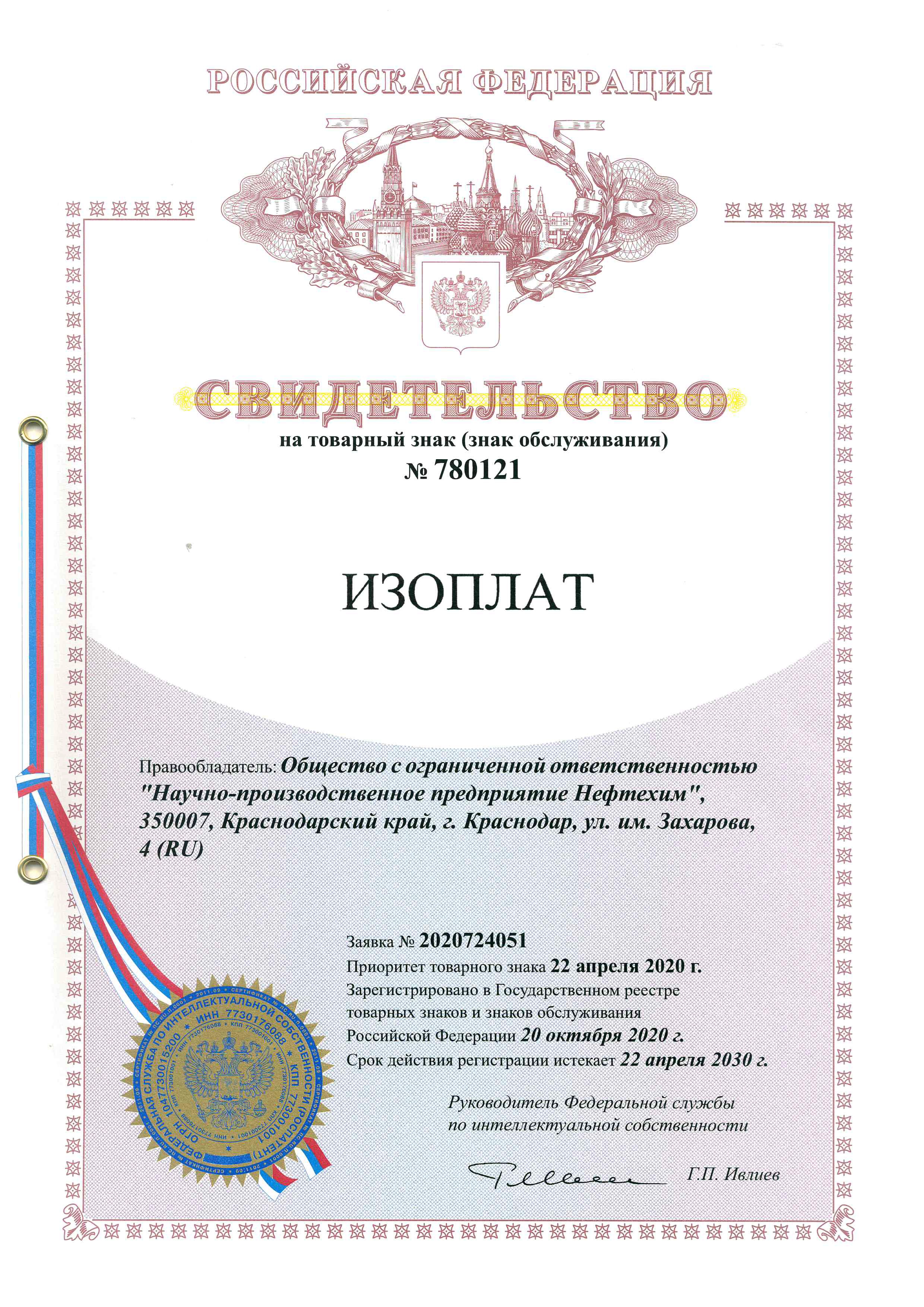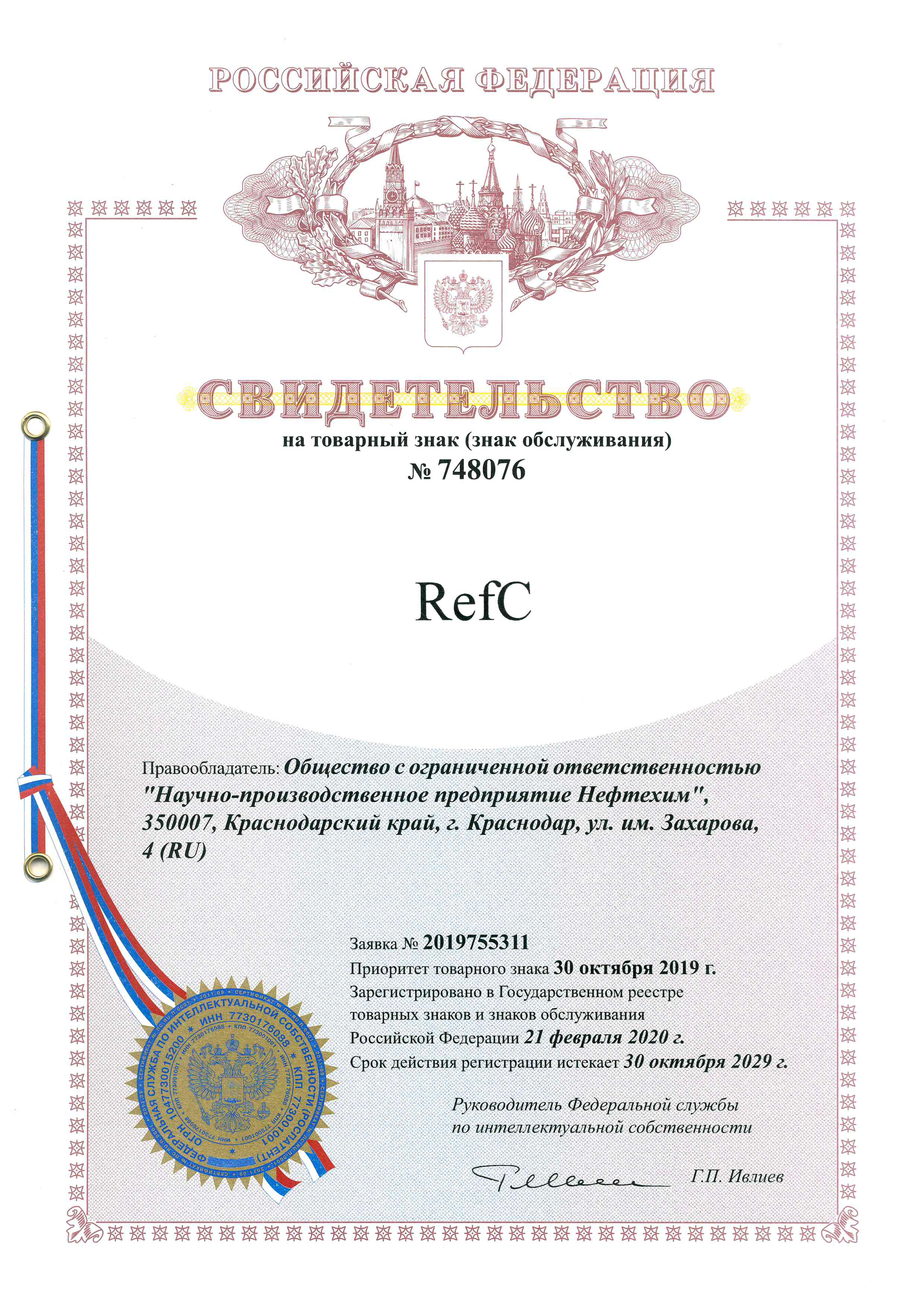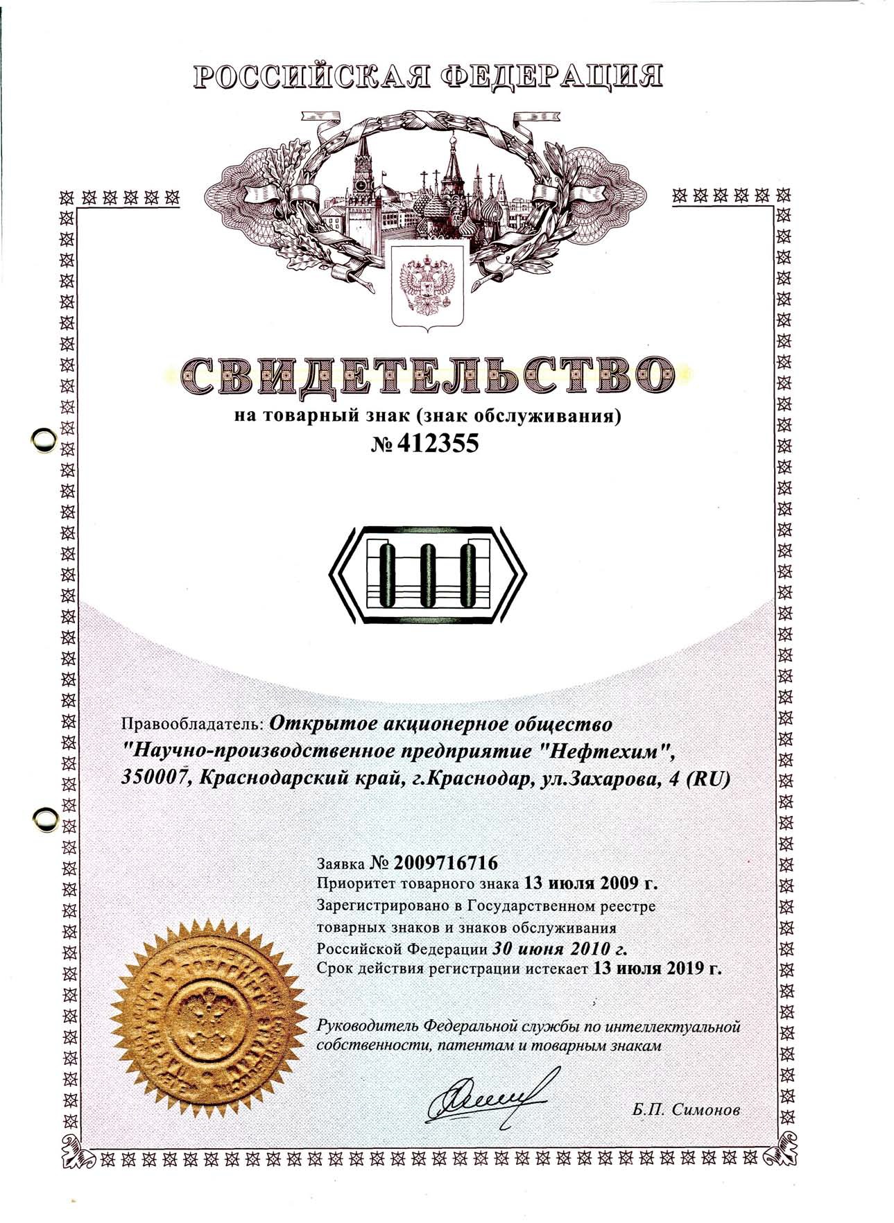 Trademark Certificate (PJSC SIE NEFTEHIM service mark)